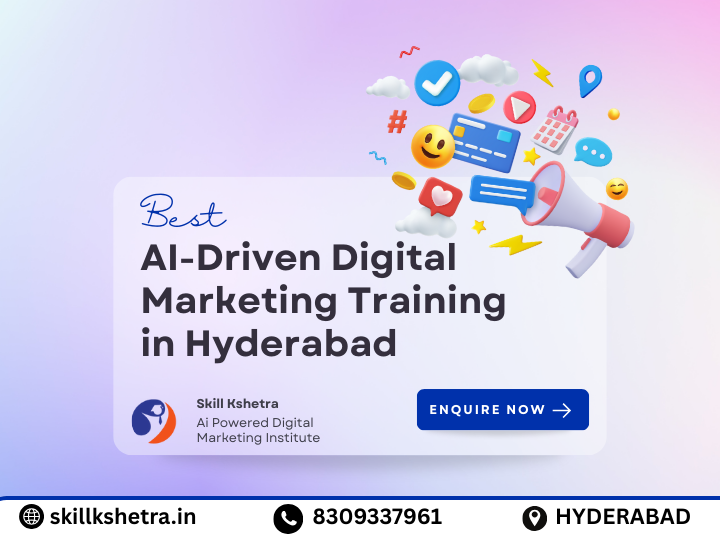 Skill Kshetra offers comprehensive AI-Driven Digital Marketing Training in Hyderabad, designed for professionals, students, and entrepreneurs who want to master the latest AI-powered tools and strategies. This course covers AI-based SEO, content creation, social media automation, paid advertising, email marketing, and analytics. Learn how to leverage AI to optimize campaigns, generate leads, increase conversions, and drive business growth. Our hands-on training includes real-world projects, live case studies, and practical exercises to ensure you gain actionable skills. Whether you want to boost your career or enhance your business performance, this AI-driven digital marketing program equips you with the knowledge and tools to succeed in the evolving digital landscape.