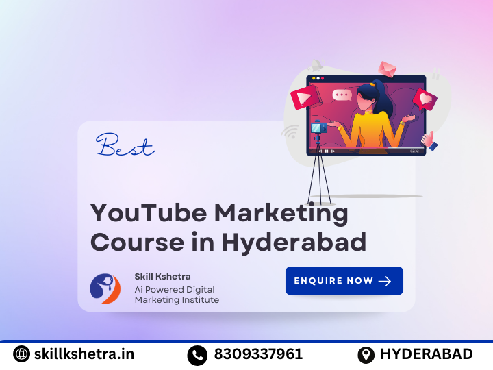 Skill Kshetra offers a comprehensive YouTube Marketing Course in Hyderabad for students, professionals, and entrepreneurs who want to leverage video marketing to grow their brand. This course covers YouTube channel creation, video optimization, content strategy, SEO for videos, audience engagement, monetization, and analytics. Learn to create compelling video content, increase subscribers, boost views, and drive traffic through practical, hands-on projects and real-world case studies. Our expert trainers provide step-by-step guidance to ensure you gain actionable skills for career growth or business success. Join Skill Kshetra to become a YouTube marketing expert and maximize the potential of video marketing.